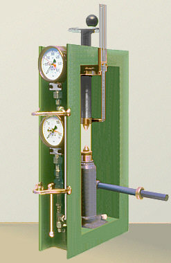 Free-swell test Number of load frames: 14 Specimen edge length: 30 to 150 mm, cubically Testing temperature: 20°C (= 68°F), constant This index test is suitable for a comparatively quick (normally 1 or 2 weeks) estimation of the swelling potential and the associated swelling anisotropy factor of rocks. |